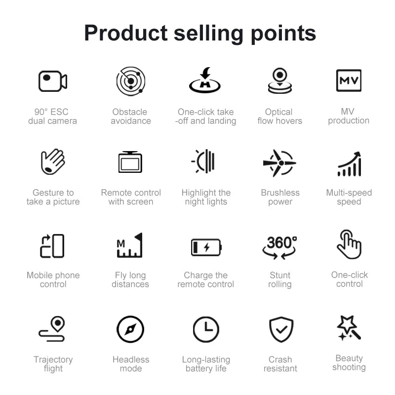 Functies: Gesture photo, video, gravity sensor, auto return, no-fly protectie